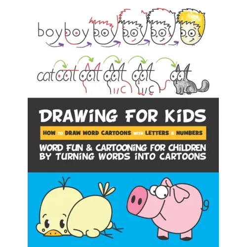 Children and teens of all ages will love learning how to turn ordinary words into cute cartoons (maybe even some adults as well). This book will teach your child how to draw with the easiest approach possible...by using alphabet letters, numbers, and other simple shapes. This book combines word fun with drawing/ cartooning tutorials. This is how "Word Cartoons" work. Your kids start off by drawing a word, such as "dog". Then, with easy to follow step by step instructions, your child turns that word into an adorable cartoon. Drawing with letters, numbers, and words really takes the drawing fun and creativity to the next level. Rachel has been teaching kids how to draw for almost ten years now, and this drawing technique really works With this no-tears strategy, learning how to draw is fun for children as young as 4 years old, but also works for adults and teens. Cartooning is fun for kids, but even more fun when it comes easy to them. This book does just that...makes drawing fun and easy for kids. This book will turn your child into the artist that he or she wants to be. Each drawing lesson is a step by step process. Each tutorial is broken down into the simplest of steps that can be followed by most children. Your child doesn't need to know how to read or write letters to follow these drawing lessons. In fact, preschoolers, Kindergartners, First graders, etc. can enjoy this book. The only thing your child needs is time and interest. You can also use this as a drawing workbook as the child can draw along in the book. Have fun drawing the day away