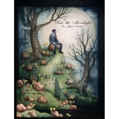 Into the Moonlight follows the story of a young man who falls in love with the moon and pursues his obsession through a dream-like landscape of colorful flowers and towering waterfalls. Jeffrey Schweitzer's whimsical poetic narrative was created to move the viewer through an intimate visual experience that is both personal yet universal. Into the Moonlight was originally illustrated with 12 delicately crafted hand cut paper "sets". These 12 pieces were crafted from layers of paper, wood and photographs then painted with washes of India ink for this charming book that is perfect for both art lovers and children alike. This is a beautiful second edition hard cover of Mr. Schweitzer's popular title. Other titles by Jeffrey Schweitzer availible through Bindlestick Books include Tales of Wizardly Whimsy, 2015 and The Eccentric Gentleman, 2016.