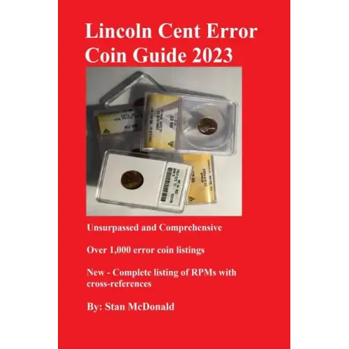 Welcome to the 2023 Lincoln Cent Error Coin Guide - Color Edition. No other coin series has as many errors as the Lincoln cent series. This book is essential for collectors looking for errors for fun and profit, as it contains thousands of errors, including hundreds of RPMs and doubled dies.There are no other coin guides with over 1,000 error listings and thousands of line items presenting the values gathered from hundreds of auctions over 15 years.There are three major error categories: striking, planchet, and die errors. Planchet errors include those with defects, incorrect alloy, and transitional errors. Striking errors include all errors created in the minting process. Die errors are the result of creating and reworking dies.Included in this guide is a listing of all error coins with photos and descriptions. A chapter is dedicated to Lincoln cent RPM and doubled die errors since 1909. No other guide has a glossary of numismatic terms as extensive and validated by PCGS, NGC, ANACS, and other numismatic organizations.There are eight double-die classifications, some of which are not easy to detect without knowledge of the error type. An appendix is provided with the classifications, descriptions, and photos.The author has over 60 years of collecting experience, long before the grading services recognized error coins.