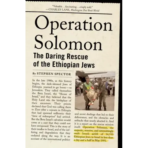 "Operation Solomon" was one of the most remarkable rescue efforts in modern history, in which more than 14,000 Ethiopian Jews were airlifted to Israel in little more than a day. In this riveting volume, Stephen Spector offers the definitive account of this incredible story, based on over 200interviews and exclusive access to confidential documents. Written with the pace and immediacy of a novel, here is the dramatic story of the rescue of the dark-skinned Jews of Ethiopia. Spector recounts how 20,000 Jews were willingly lured from their ancestral villages to Addis Ababa, expecting to be taken quickly from there to the Holy Land. Instead, they became pawns in a struggle between the Israeli government and Ethiopia's repressive dictator, who tried to coerce Israel into selling him weapons he needed in a losing war against rebel armies. In the resulting stalemate, the Jewish community was forced to live for nearly a year in squalidhovels, vulnerable to the dangers of the city, including crime and HIV. Worse yet, the imminent collapse of Addis Ababa, with the rebels closing in on the capital, raised the threat of bloody street fighting or even a genocidal attack on the Jews, a small minority in a nation that is primarilyChristian and Muslim. Spector describes the tense negotiations among Israelis, Ethiopians, and Americans, which became increasingly urgent as time ran low and the danger mounted. And he highlights the secret deals and sudden setbacks that nearly aborted the mission at the eleventh hour, even asIsraeli jets sat on the runway in Ethiopia, waiting to take the Jews to the land for which they had yearned for generations. Recounting the full story for the first time, Operation Solomon is a stirring account of a heroic rescue achieved in the face of daunting odds.