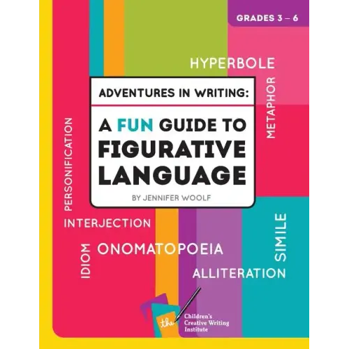 HYPERBOLES, SIMILES AND MORE The secret tools you need to make writing fun for your child. Adventures in Writing: A Fun Guide to Figurative Language is a comprehensive, full-color, professionally designed workbook that emphasizes the fun in writing. Each chapter has an easy to understand definition, plenty of worksheets for practice, and always ends with a game or activity. Figurative language makes writing fun. Whether it's creating massive exaggerations, making animals talk or putting words together that roll right off of your tongue, there's no denying that writing is a blast. (Yes, that's a metaphor ) Sure, you can write that the lady next door snoops, but wouldn't it be more fun to say that the crazy cat lady next door is one bulb shy of a chandelier or one fry short of a happy meal, and can't keep her nose out of my business? Adventures in Writing: A Fun Guide to Figurative Language is for students in grades 3-6. It includes instruction in personification, onomatopoeia, interjection, alliteration, hyperbole, metaphor, simile and idiom. Let your children in on the fun They will become better writers, communicators and students.