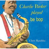 Ever hear of Charlie Parker? The great jazz saxophone player? If you have or if you haven't, it's okay. Look at this board book and you'll hear Charlie Parker; you'll hear music in your mind. "Be bop. Fisk, fisk. Lollipop. Boomba, boomba." Look. That's Charlie swinging and spinning all over the pages. And that's Charlie's cat, waiting, waiting for him to come home...