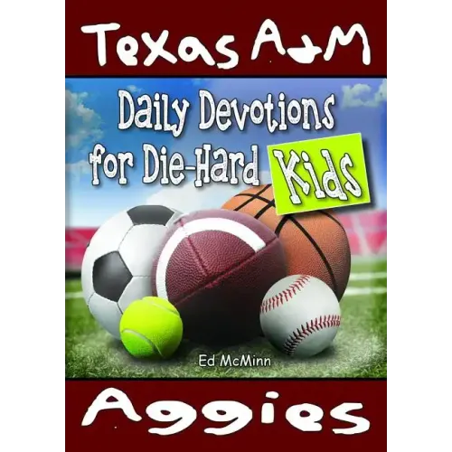 DAILY DEVOTIONS FOR DIE-HARD KIDS: TEXAS A&M AGGIES combines the excitement you feel when reading about the Aggies with the fun of learning more about Jesus and your faith. You'll read stories like these: -Some goats once helped the Aggies get a star football player. -With an inning starting, A&M's shortstop found his glove fingers were stuffed with weiners. -What A&M did in a football game once made "Ripley's Believe It Or Not." -A&M once had a football player who was homeless. -Johnny Manziel went back to school -- and wound up winning the Heisman Trophy. You'll read about a bunch of A&M people like Heisman-Trophy winner John David Crow, Dat Nguyen, Von Miller, Shawn Andaya, and many others. Their stories and tales of some great games and big wins are told with a twist: They all teach you about God's story, too.
