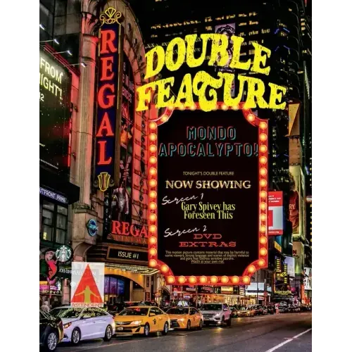 Featuring two novelettes presented back-to-back as a Friday or Saturday night "Double Feature" billing, along with two warm-up, flash fiction style "Short Films", Double Feature #1: Mondo Apocalypto! showcases the talents of writers Chris Philbrook and Melody Alice, along with magazine founder w.p. Quigley taking the spotlight as the clinically insane architect of the Issue #1's main events: Gary Spivey Had Foreseen This, a tale of an unlikely hero in a very likely apocalypse, and DVD Extras, a loving ode to the most notorious Mondo horror movie ever set to film...that ups the ante!