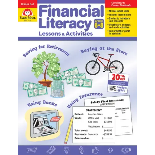 This dynamic teaching resource provides reproducible cut-out math manipulatives, reference sheets, and visual aids to support students as they explore real-world lessons and hands-on activities related topaying bills, earning money at a job, saving for retirement, making investments, buying and using insurance, and more.