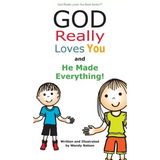 "God Really Loves You and He Made Everything " is a children's book that explains how much God loves us, that we are special and that He made everything. He made the earth, heaven, sun, moon, trees, fruit, fish, birds and animals. Not only did He make us, but He said we were good and He blessed us. He gave us food to eat. We are thankful that God loves us and watches over us.
