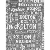 Kolton will love this notebook with his name all over it. The fun grunge style with gray background features his name in a variety of fonts. The composition notebook measures 7.44 by 9.69 inches and contains 101 pages of wide ruled paper. It's great for school and everyday use, also makes a great gift.